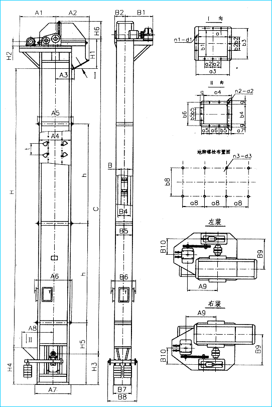 TH型斗提機(jī)外形及安裝尺寸